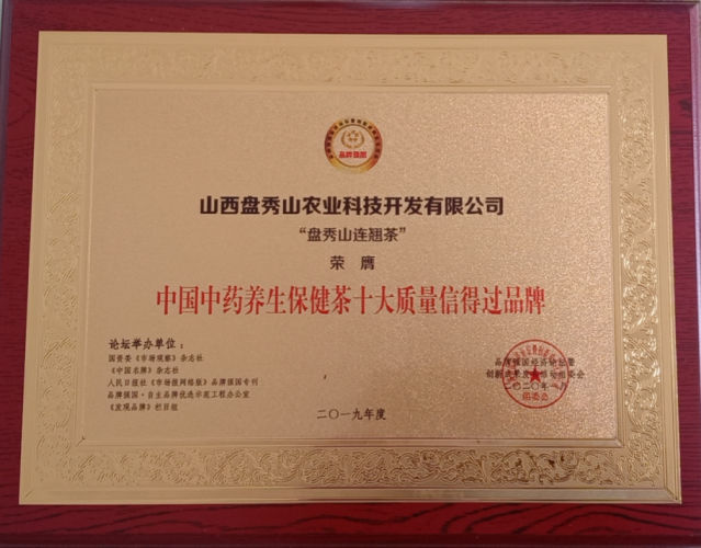 目前,在李建国和刘师傅的努力下,已开发出十几种“药食两用”养生茶。品种有:连翘茶、小白蒿(茵陈茶)、蒲公英茶、槐花茶、黄精叶茶、桑叶茶、山楂茶等。每种茶都有不同的养生功能,非常适合人们经常饮用。比如,据《本草纲目》记载,连翘茶可治心肺积热、清热解暑、生津止渴、利咽润喉,长期服用令人颜润肤红、明目清心、轻身耐老,令人焕发青春活力。现代药理研究表明连翘茶有保护肝脏、抗油脂氧化、抗衰老、调节免疫功能和增强抗应激能力等功效。公司所生产的盘秀山连翘茶口感清新芳香、滋味醇和甘美,极具养生保健之功能。2018年经 质检部门检验合格,在产品质量上 是 纯绿色无添加无公害。